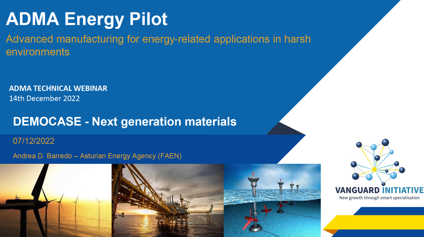 The Asturian Energy Foundation (FAEN) presented the scope of the “Next generation materials” demo case, as well as its latest achievements, its current and future planned activities. NAITEC automotive and mechanical technology center (https://www.naitec.es/) was also presented to all attendees, and a focus was given to materials for offshore energy application, to the Nano Pilot and the SHM demo case, opening opportunities for collaborations with the ADMA pilot.